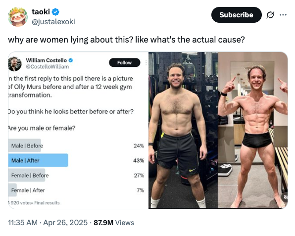 The other day I saw a post on X about this guy’s super impressive physical transformation – and what men and women thought about it.